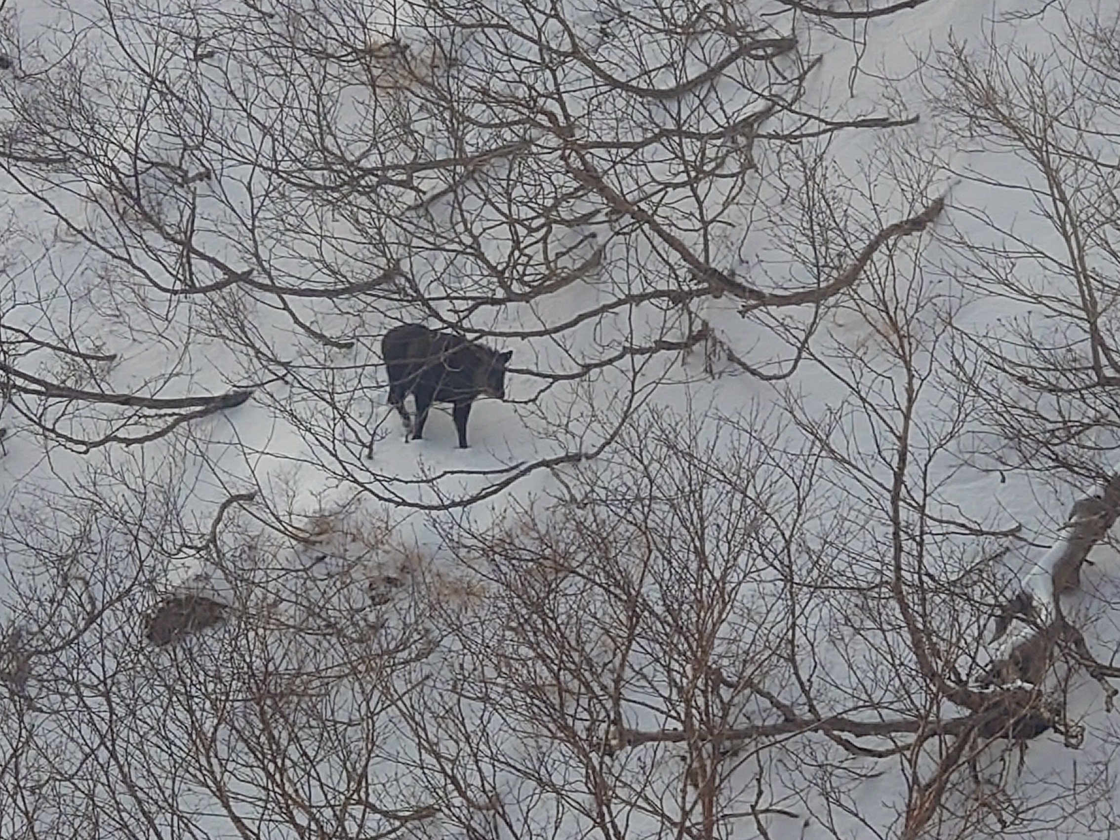 冬に限らずカモシカは年中見られる動物ではあるのですが、背景が雪で白い冬はこのようにとても見つけやすいです!